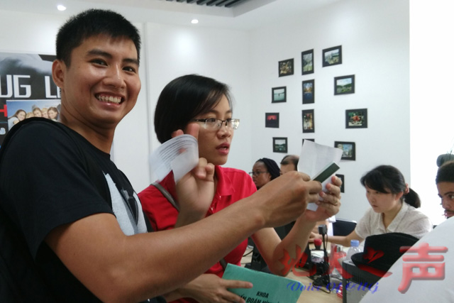 来自国际教育学院的十多名留学生志愿者也成为迎新大厅一道亮丽的风景。他们说着流利的汉语和工作人员交流,热情地帮助同胞和各国留学生,让初来乍到的新面孔感觉到留学生大家庭的亲切温馨和融融暖意。