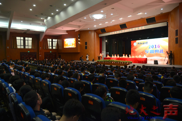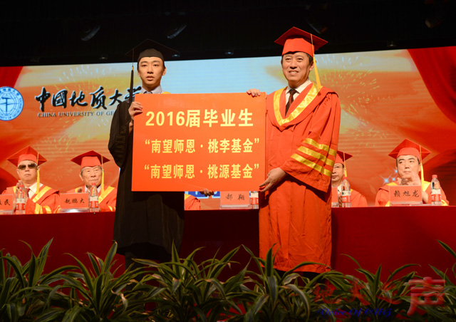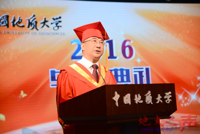 (通讯员史芹 摄影张玉贤)6月24日上午,2016年学生毕业典礼在弘毅堂举行。中科院院士赵鹏大、殷鸿福、金振民、郝芳,校领导郝翔、王焰新、傅安洲、成金华、唐辉明、赖旭龙,相关职能部门、各学院(课部)负责人及2016届毕业生参加典礼。