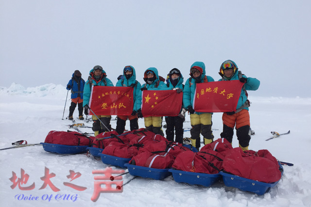 4月12日凌晨,登山队一行6人由北京启程飞往挪威朗伊尔城,经过两天的前期准备,检查并补充了极地徒步所需的相关装备。由于博内奥北极营地机场冰层情况不稳定,出现了四次冰裂。在等待两天后,队员们于17日18时47分由朗伊尔城飞往博内奥营地。但由于冰况逆向漂移,队员们被迫取消了原定宿营点,换乘直升机飞抵徒步起始点。一路上,队员们在零下四十至五十度的极低温度下,冒着凛冽的寒风甚至是暴风雪行走在布满冰裂缝的线路上,有队员出现了冻伤的情况,甚至有队员在睡梦中差点掉进冰裂缝。