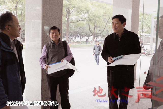 此后连续三天,校领导郝翔、王焰新、朱勤文、傅安洲、成金华、唐辉明、赖旭龙、王华、万清祥和相关部门负责人,分别深入到西区教一楼、教三楼认真检查巡视教师及学生上课情况,并深入课堂听课。