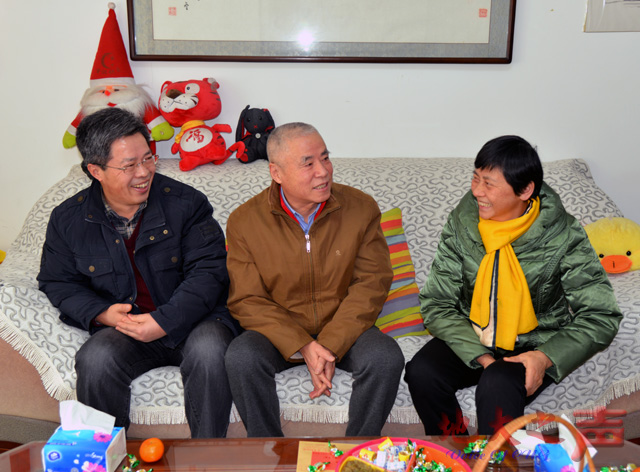 在离任校领导赵延明、张锦高、杨昌明家中,朱勤文、王华叮嘱他们在安享晚年的同时,关心、支持和理解学校工作,积极为学校的建设发展建言献策。
