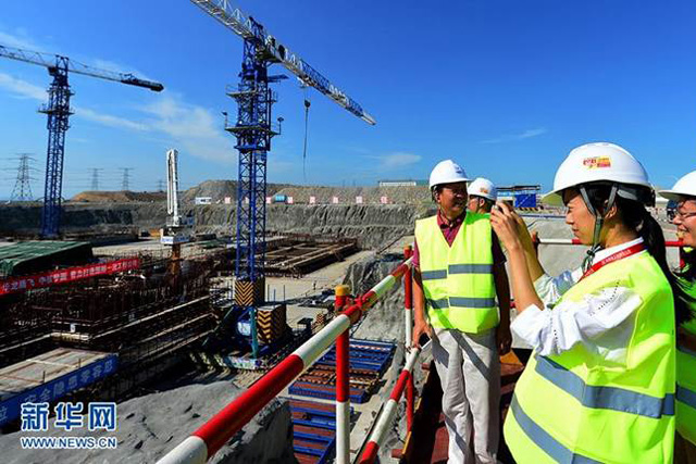 2015年6月16日,参会嘉宾在“华龙一号”示范工程--中核集团福清核电5号机组施工现场参观。当日,中核集团在福建福清面向全球组织召开“华龙一号”技术推介会。新华社记者 魏培全摄