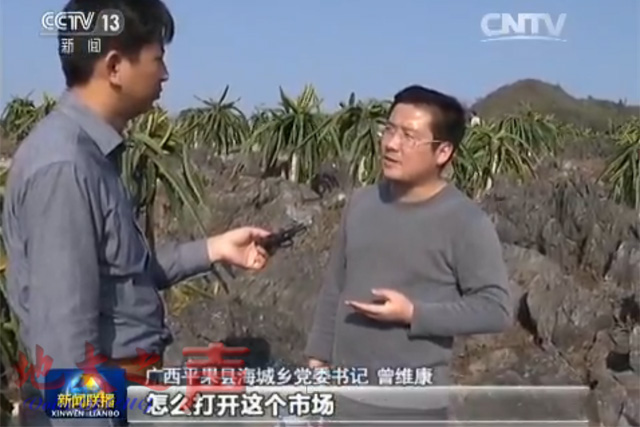 《新闻联播》报道曾维康视频截图 (通讯员张祎)1月12日,中央电视台新闻联播《治国理政新实践.脱贫军令状》栏目播出《精准扶贫:扶贫产业如何长效?》,报道了opta足球工商管理专业2004级校友、广西平果县海城乡党委书记曾维康扎身基层、服务脱贫的事迹。