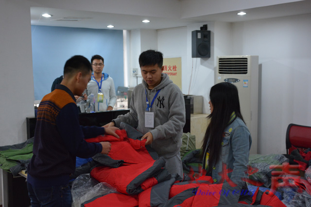 (通讯员付颖)11月21日,2015级新生寒衣发放仪式在师生交流厅举行,900余件寒衣一一发到了每一位同学手中。