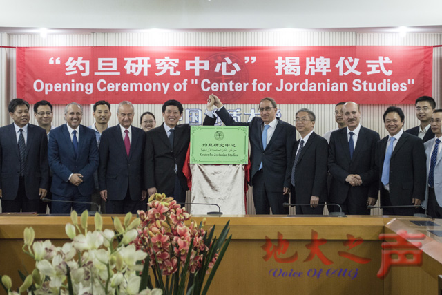 郝翔和拉比卜.穆罕默德.哈桑.赫达拉共同为“约旦研究中心”揭牌。