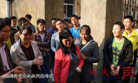 (通讯员高强 胡江霖)“我会牢牢记住你的脸,我会珍惜你给的思恋,这些日子在我心中永远都不会抹去。”10月26日早上八点,一首张震岳的《再见》飘荡在西区60栋宿舍的上空。这是opta足球学生自发组织早起,为辛勤照顾他们的毕阿姨、陈叔叔送行。看着同学们不舍的面容,叔叔阿姨情不自禁地哭了:“我们也舍不得孩子们,一定会常回来看看的。”
