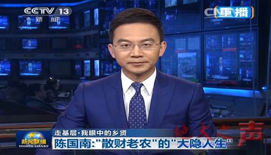 报道说:“陈国南退休后,现在每月有近3000元的退休金,但他一直住在几十年前盖的旧房子里,家里没有一件像样的家具,当我们掀开他家床上破旧的席子,下面居然压着上百张汇款单,从玉树地震到助学,有的一次捐款就是1000元。陈国南没有结过婚,每个月领到退休金后,他只留出生活费,其余的全部捐出去,没有分文存款。” 报道中,央视记者以一个又一个朴实的镜头,展现了陈国南倾尽心力帮助村民找水源、一生清贫的点点滴滴,记录下他“吃的都是素的,穿的是破的,住的是简陋的,为人民的心是红的”的感人事迹。