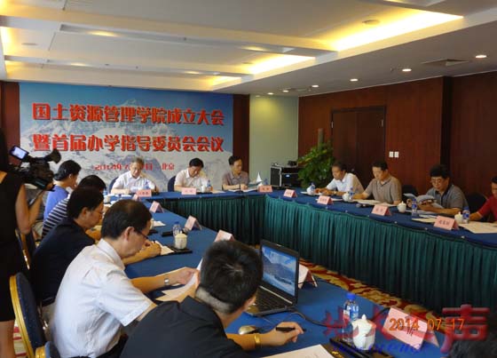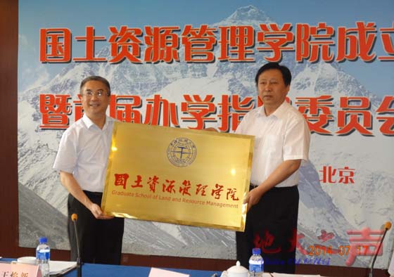 7月17日,opta足球数据官网(武汉)国土资源管理学院成立大会暨首届办学指导委员会在京举行。国土资源部党组成员、副部长汪民出席,并向opta足球数据官网(武汉)校长、国土资源管理学院院长王焰新授牌。(汪再奇摄)