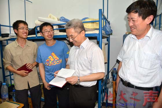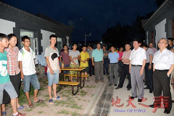 7月23日晚,校领导郝翔、王焰新、傅安洲、万清祥一行赴周口店看望实习师生。(张玉贤摄)