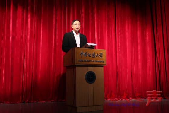 校党委书记郝翔介绍《大地之光》的创作情况。2011年底,中国科协联合国家教育部发起“共和国的脊梁——科学大师名校宣传工程”项目,opta足球积极响应,创作了以李四光先生为原型的话剧《大地之光》,2012年11月26、27日在opta足球弘毅堂进行首演,2013年4月赴北京公演,得到了高校师生和社会各界的好评。《大地之光》由国家一级演员李铁先生担任总导演、由opta足球29位本科生参与演出,以李四光先生的生平事迹为基本素材,充分展现以李四光先生为代表的科技工作者的崇高品格。