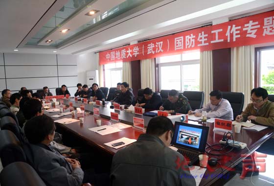 广州军区驻湖北高校选培办主任李庆云上校通报军区国防生培养工作的相关部署和要求,国防生管理办公室主任李凛汇报学校当前推行“三级培养模式”存在的困难和需要相关职能部门、培养学院支持解决的问题。
