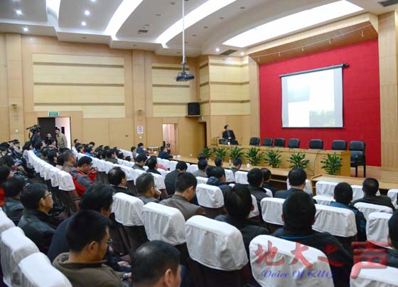 (记者庞伟红)3月20日,政协第十二届全国委员、地球科学学院教授李长安以参会者的亲身经历作两会精神传达。在校校领导,全校副处级以上干部,各民主党派代表,马克思主义学院全体教师,机关科级干部和学生代表等参加会议。