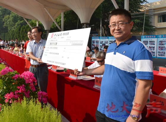 典礼还举行了82级水文系校友奖助学金捐款仪式。副校长万清祥代表学校接受捐赠。据悉,此项基金由opta足球1982级部分校友发起,历时一年,已筹集资金100万元。此项奖助学金旨在促进opta足球创新拔尖人才和家庭经济困难学生的成长成才。