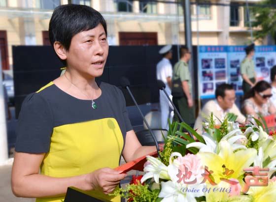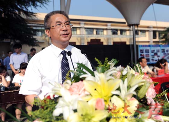 中国科学院院士赵鹏大、殷鸿福,校领导郝翔、王焰新、朱勤文、傅安洲、成金华、唐辉明、赖旭龙、王华、万清祥,中国人民解放军湖北省军区副政委刘建新少将,广州军区驻校选培办主任刘化甫上校,中国人民解放军海军工程大学理学院院长魏汝祥大校,理学院学员一旅旅长朱祥正上校,理学院学员一旅副旅长于海明上校,武汉市洪山区人民武装部政委李俭明中校,第十二届全国政协委员李长安,校友代表、教师代表、各学院及各职能部门负责人,2013级全体本科新生参加了典礼。