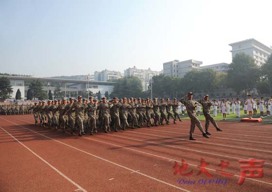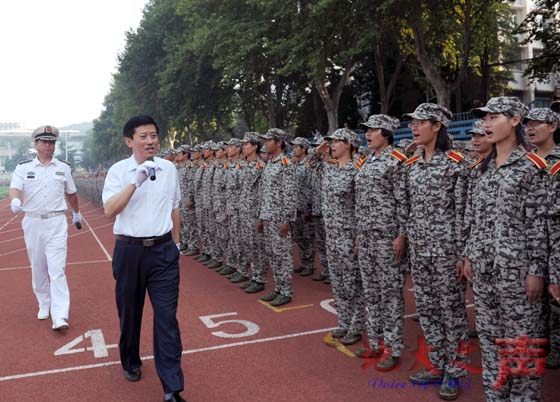 校党委书记郝翔检阅了军训新生方队。同学们个个精神饱满、热情高涨,“首长好”、“为人民服务”的口号声整齐嘹亮。