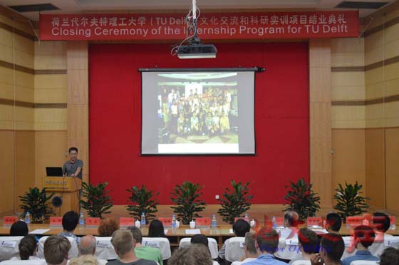 荷兰代尔夫特理工大学访学团学生代表在结业典礼上发言。表示通过此次交流活动,体会到了中国文化和荆楚文化的魅力,回国后一定继续学习汉语和中国文化。