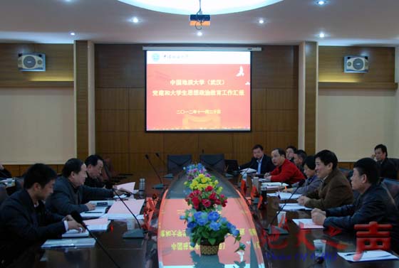 督导巡视组组长、武汉科技大学原党委副书记杨杰一行3人,校党委书记郝翔、党委副书记朱勤文、傅安洲、成金华、各二级党组织书记及党务部门主要负责人参加了汇报会。