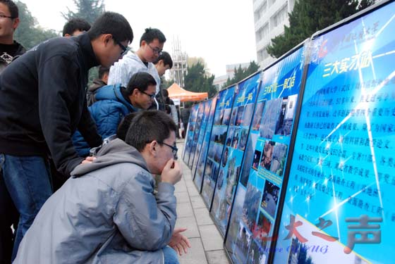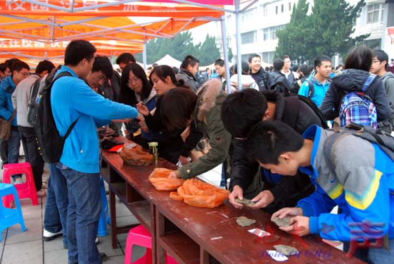 随后,在矿石标本科普展上,展出的内蒙铁锡矿石、新疆铜镍硫化矿石,以及各类磷、铝、煤矿矿石等,以及“三大实习基地”照片集锦和优秀学生成果简介吸引了广大师生驻足参观。煤及煤层气工程专业的李瑞同学告诉记者,他们每年都会去山西的矿井挖煤采矿,这才有了现在所展示的矿石。外国留学生也为“倾听石头的声音”纷纷赶来。