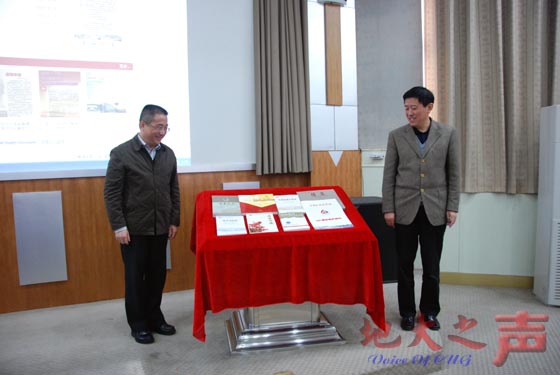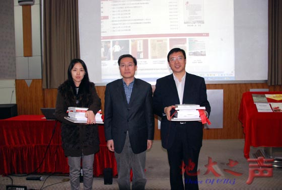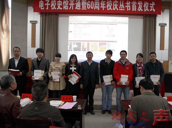 郝翔讲话。他说,今天正式开馆的电子校史馆和以校史为代表的校庆系列丛书,不仅展示了学校在不同时期与人民同甘苦、与祖国共命运、与社会同进步的发展历程,同时总结了学校在不同时期的办学经验和办学特色,是一笔非常宝贵的精神财富,它必将成为我们建设一流大学文化的重要组成部分,也必将为“建设地球科学领域世界一流大学”提供有力的精神支撑。他希望,全校广大师生能够以电子校史馆开馆和校庆系列丛书的出版为契机,更好地弘扬学校的优良传统,展现学校的人文精神,继续秉承“艰苦朴素 求真务实”的校训精神,励精图治,锐意进取,为早日实现“地球科学领域世界一流大学”的办学目标而共同奋斗。