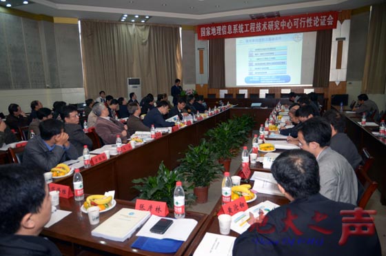 三、工程中心负责人谢忠作《国家地理信息系统工程技术研究中心建设可行性论证报告》,专家组进行讨论。