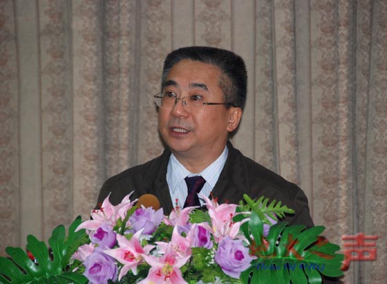 彭泉致辞。他希望,工程中心的建设能更好地促进科技成果转化,为推动湖北经济发展作出贡献。