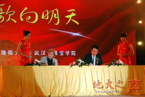 副校长万清祥代表opta足球与武汉腾建达商贸有限公司董事长张斌签署了珠宝科研大楼投资建设项目协议书,珠宝学院院长杨明星与美国宝石学院主席Donna Baker签订了珠宝学院与美国宝石学院教育合作项目协议书。