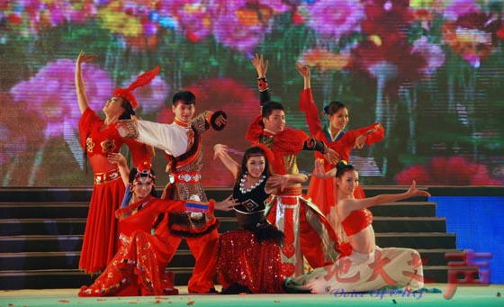 七、参会人员观看了以“欢歌向明天”为主题的庆典晚会。图为精彩的文艺演出。