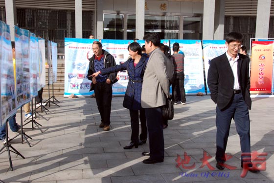 校党委书记郝翔致辞。他说,60年来,学校围绕国家战略需要,立足地球科学特色,服务经济社会发展,求真务实,开拓创新,在人才培养、科学研究、社会服务、文化传承创新等方面取得了显著成绩。本次成果展以“甲子积淀 世纪腾飞”为主题,采用固定橱窗和流动展板的形式全面展示了学校在教育教学、科学研究、师资队伍、学科建设、人才培养、国际交流、党建工作、校园文化、办学条件等各方面取得的成绩。他强调,要以60周年校庆为契机,回顾历史,总结经验,谋划未来,共同奋斗,在新的历史起点上,为推动学校科学发展、跨越发展、早日实现“建设地球科学领域世界一流大学”的办学目标作出新的、更大的贡献。