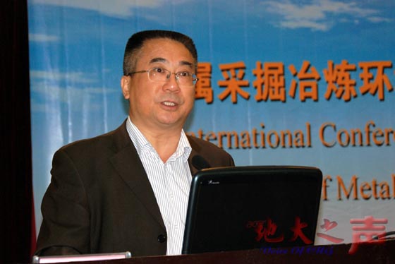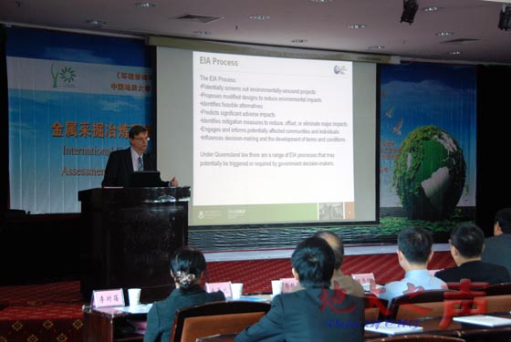 三、本次会议主要围绕金属矿采掘、冶炼项目开发现状、趋势及存在的主要环境问题、环境影响评价与评估过程中面临的技术和管理问题等方面进行讨论。图为专家作主题报告。