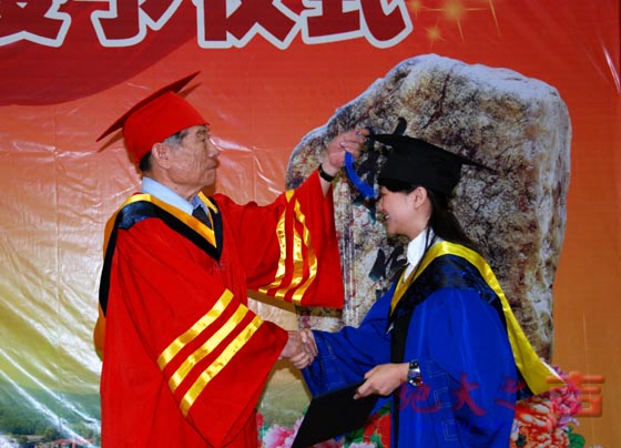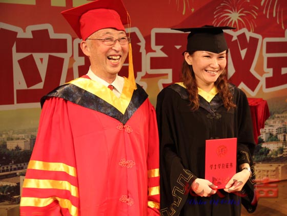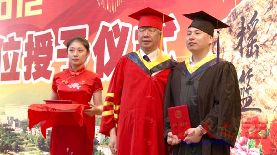 十二、毕业典礼后,授学位仪式举行,校领导、院士分别为毕业生授予学位。