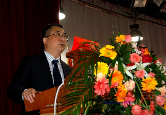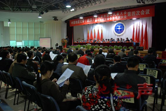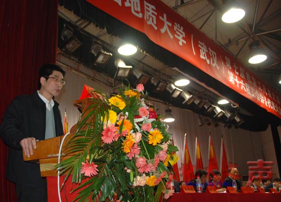 四、校工会主席、党委副书记丁振国作《明确目标 开拓创新 为实现学校跨越式发展而努力奋斗》的工会工作报告。