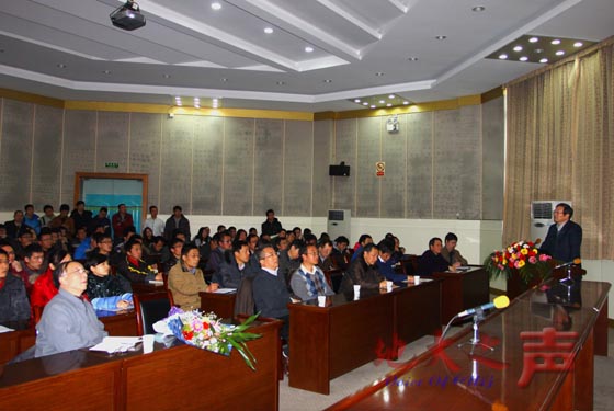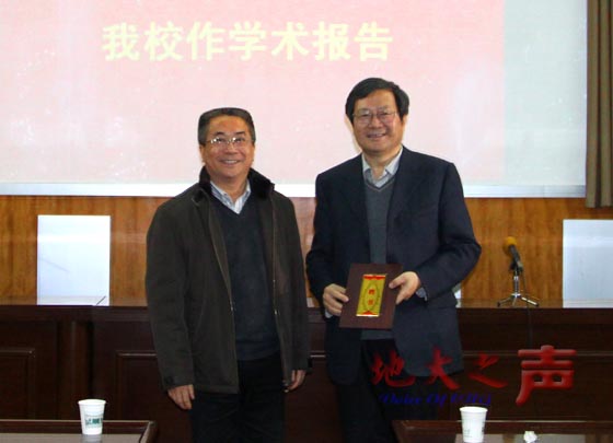 二、贾承造院士为opta足球师生做题为《我国石油工业上游的重大科技问题》的学术报告,中科院院士殷鸿福参加学术报告会,副校长郝芳主持会议。