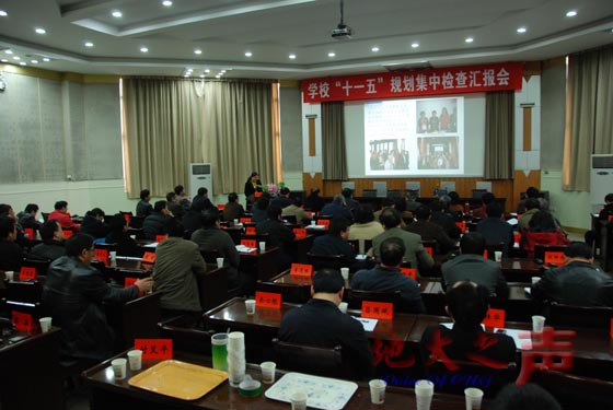 3月15日,学校“十一五”规划集中检查汇报会召开,全体评委,各二级单位主要负责人、当值汇报单位副处及以上干部参加汇报会,28个职能部门与群团组织,20个学院(课部)进行了汇报。(屠傲凌摄)