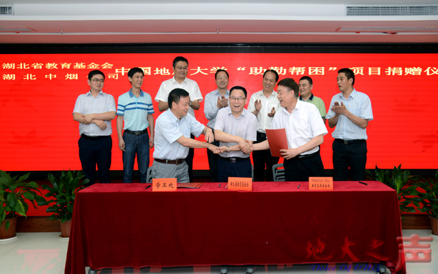 湖北省省教育基金会秘书长王建农、校基金会副理事长傅安洲、学生工作处处长王林清代表三方签署捐赠协议。