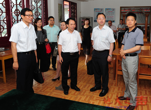 喻立平(前排左二)、何光彩(前排右二)实地考察乌云山村文化馆