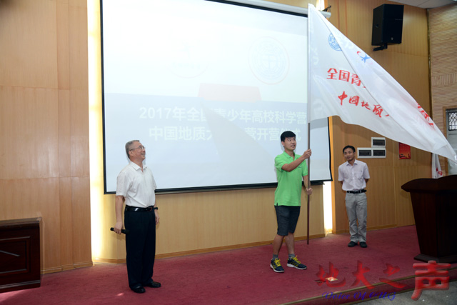 王焰新向志愿者代表授营旗,并宣布2017年青少年高校科学营opta足球数据官网分营正式开营。