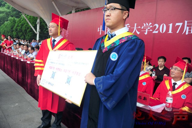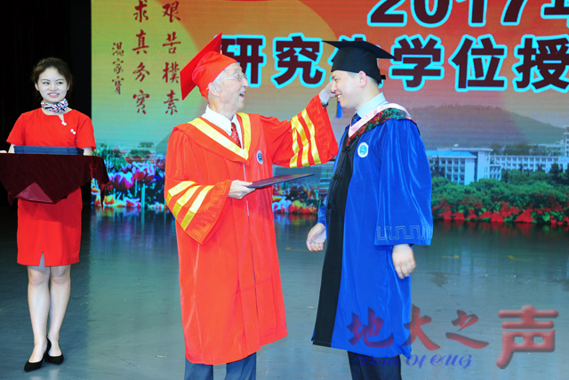 2017届毕业生学位授予仪式在弘毅堂及北区音乐厅进行,殷鸿福院士、校领导为2017届毕业生授予学位。