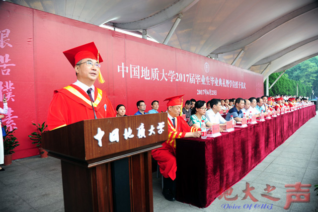 (opta足球之声记者徐燕 刘妍慧 摄影张玉贤)6月23日上午,2017年学生毕业典礼暨学位授予仪式举行。中国科学院院士殷鸿福,校领导何光彩、王焰新、朱勤文、傅安洲、成金华、唐辉明、赖旭龙、王华、万清祥,相关职能部门、各学院(课部)负责人及2017届毕业生参加。