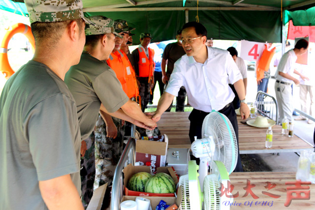 随后,校领导一行来到队员们所在的四号棚,详细了解了后勤保障情况。何光彩强调,当前抗洪任务还很艰巨,希望突击队员们再接再厉,继续发扬不怕苦累、连续作战的顽强作风,打好抗洪抢险这场硬仗。