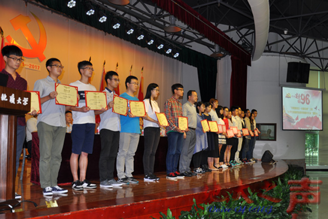 校党委副书记朱勤文宣读表彰决定,校党委书记何光彩为“十佳学生党支部”“十佳学生共产党员”颁奖。