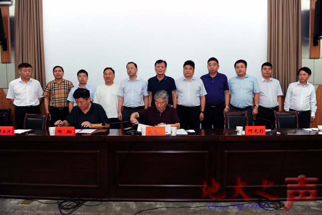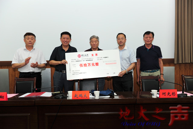 赵鹏大、郝翔在捐赠协议书上签字