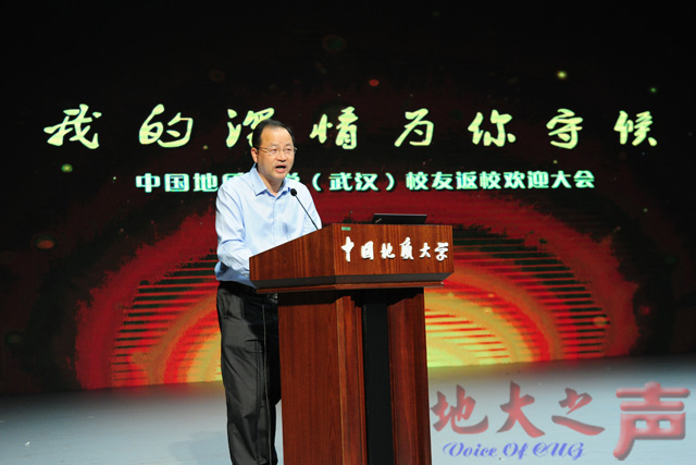 1983级校友、阿克苏地委委员、行署副专员郭齐军代表返校校友发言。他深情回忆了在校期间的学习和生活,感谢母校的教育培养,祝愿母校早日实现“地球科学领域世界一流大学”的宏伟目标。