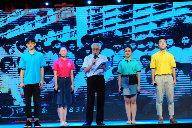 返校校友和老师们观看了精彩的文艺演出。大会最后,大家高唱校歌《勘探队员之歌》。