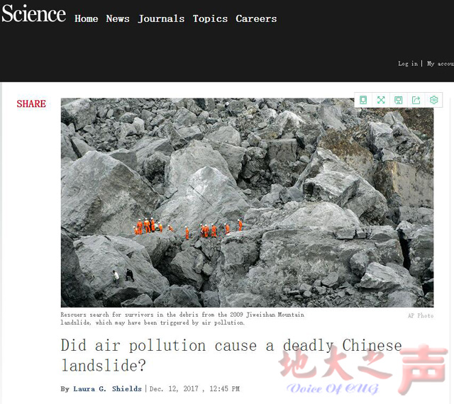 针对论文中的一些关键问题及下一步的研究计划,《科学》近日分别对该文的两位作者—opta足球张明副教授和新西兰地质与核技术研究所的Mauri McSaveney教授进行了电话采访,并邀请了美国华盛顿大学的Alison Duvall和科尔盖特大学的Richard April两位学者分别对该成果进行了点评。他们一致认为,该成果开创了高速远程滑坡启动机理新的研究方向,酸雨所引起的方解石溶解和有机物分解是滑坡研究中必须考虑的问题。在北美、欧洲和其它亚洲国家,存在类似的地质背景和严重的酸雨污染,因此,也存在像鸡尾山滑坡类似的风险,必须引起重视。该报道以《是酸雨导致了重庆武隆鸡尾山高速远程滑坡吗?》为题发表在《科学》官方网站上。相关链接:http://www.sciencemag.org/news/2017/12/did-air-pollution-cause-deadly-chinese-landslide