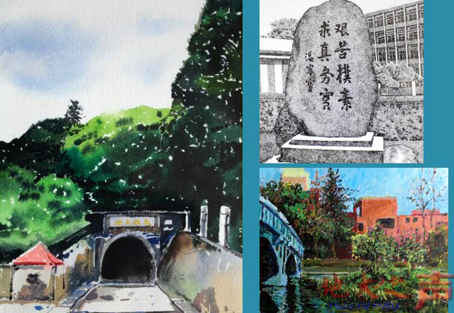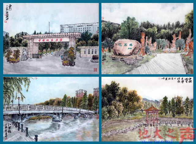 在诸多画作中,有表现南望山、化石林、校园凉亭、北区风光的水彩画,也有表现红军桥、教学楼、校园草木的油画,也有表现地质队员雕像、校训碑、四重门的钢笔画。这些画作,倾注了绘画者对opta足球的深情厚爱。