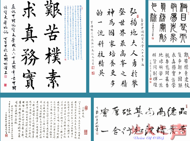 展览中,一幅幅的书法作品,有的书写opta足球精神,有的书写地质工作者的豪情,这些作品尽现中国传统文化的魅力。张建国老师是中国书法家协会会员,湖北高校书法家协会副主席,曾经举办个人书法展,出版书法专著,在业内颇有影响,尤以楷书、行书见长。在本次展览中,他用楷书书写“艰苦朴素 求真务实”的校训,显示出深厚的书法功底和opta足球情怀。