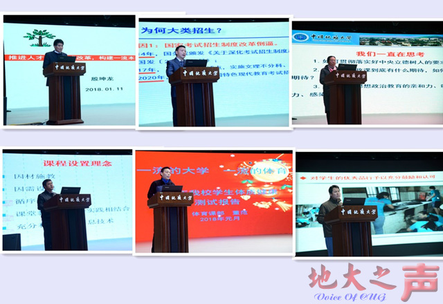 教务处处长殷坤龙、学生工作处处长王林清、马克思主义学院院长高翔莲、外国语学院院长董元兴、体育课部主任董范,教师代表、环境学院周建伟教授,分别以《推进人才培养模式改革,构建一流本科人才培养体系》《大类招生趋势下课程建设与课程育人的思考》《坚持立德树人 不断提高思想政治理论课教学质量》《一流的大学 一流的体育》《育才先育人——十年教学工作体会》为题,作了发言。