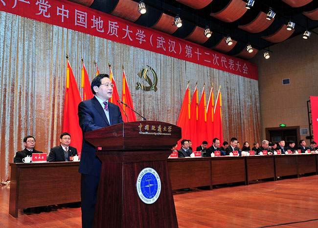 报告从坚持党的全面领导、坚持以人为本、坚持三全育人、坚持争创一流、坚持地学特色、坚持文化引领等六个方面,全面总结了学校第十一次党代会以来的发展思路和办学经验。报告指出,学校第十一次党代会以来的五年,是学校党的建设全面加强、思想政治工作成效显著的五年,是学校综合改革向纵深推进、攻坚克难力度最大的五年,是学校办学特色充分彰显、内涵发展不断深化的五年,是学校办学条件显著改善、办学水平大幅提高的五年。学校党委领导核心作用充分发挥,办学治校水平显著提升,核心竞争力持续有效增强。