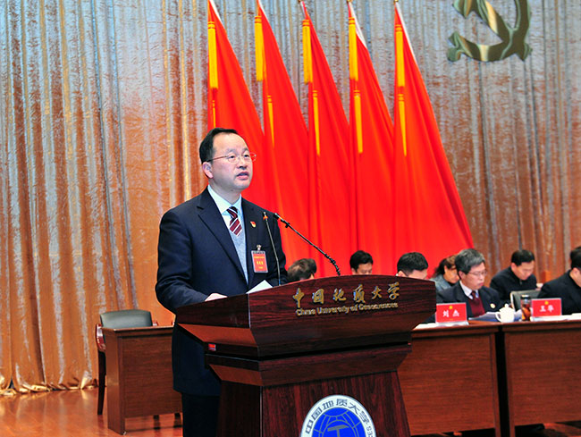 报告最后指出,伟大时代赋予我们崇高使命,伟大事业激励我们奋勇前行。让我们紧密团结在以习近平同志为核心的党中央周围,不忘初心,牢记使命,全面落实立德树人根本任务,全面推进地球科学领域国际知名研究型大学建设,为建设地球科学领域世界一流大学而努力奋斗,为实现中华民族伟大复兴的中国梦作出新的更大贡献!