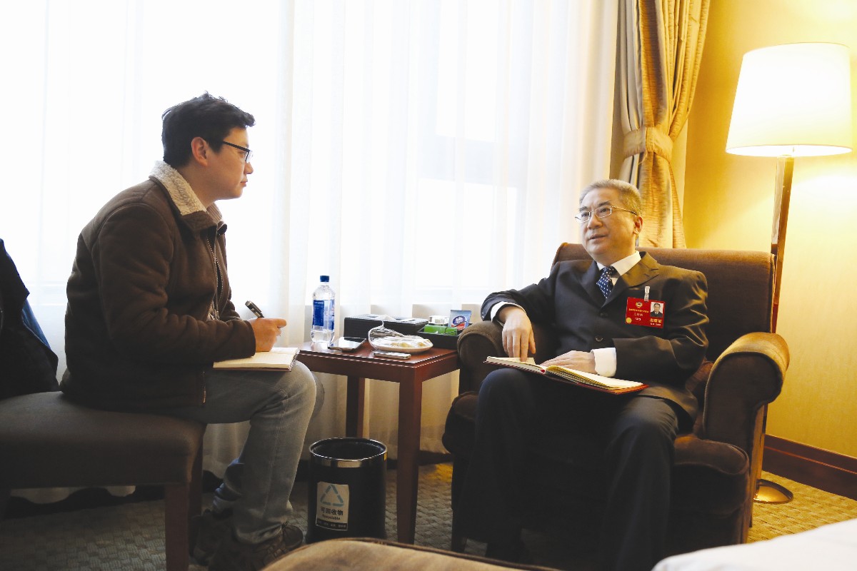 王焰新委员(右)接受本报记者采访